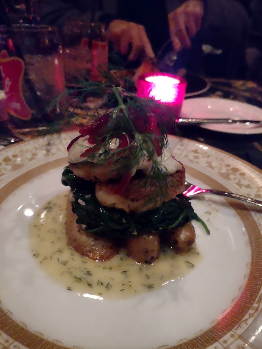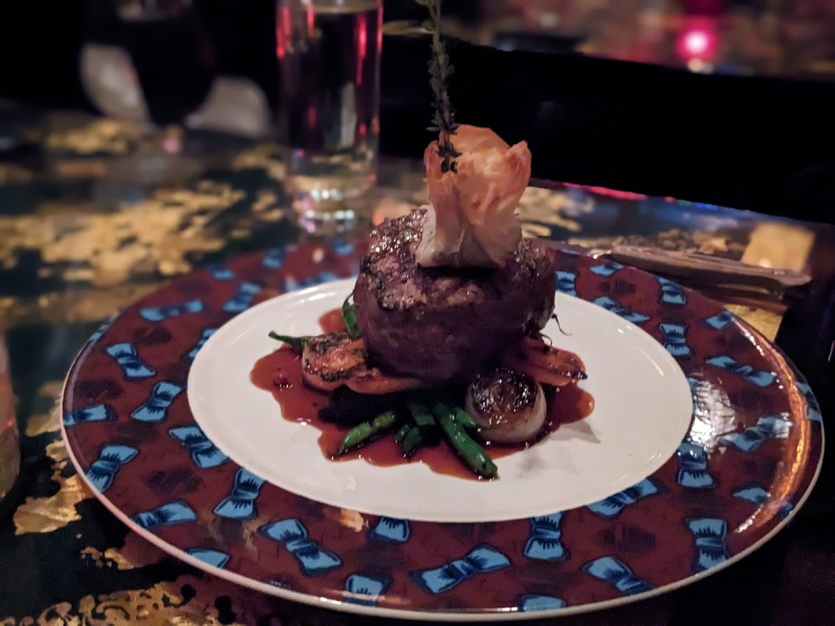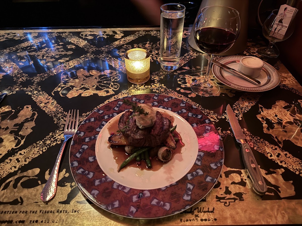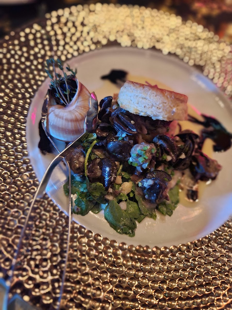 Oh, L'Opossum, you have my heart . This is one special place. From the moment you walk in through the thick velvety curtains at the door, you have entered a maximalist, eclectic den of luxury and decadence best enjoyed through a lens of nostalgia and humor. An array of whimsical , colorful light fixtures are flanked by walls painted thickly with a rich red paint, upon which are hung a smattering of memorabilia and art . The lighting is dim, the quirk of the decor is endearing, and the food is pure magic . I've had the pleasure of eating here a few times and every time I'm more blown away. I started the meal with a delightfully cocktail called 'The Jock Snifter', composed of Tom of Finland Vodka, Guava Jelly, Grapefruit & Aquavit. After drinks, we followed it up with Les Escargots a la ham biscuit . Snails will always be a divisive ingredient, but they're a personal favorite. Served with a garlic beurre blanc , I was sorry when it was gone. Luckily, I had the Filet Mignon of Beef "Swellington", which is basically (although the word basic has no place here) a deconstructed beef wellington . Beef wellington is my all time favorite meal, so I was hesitant to order a version that would dare to deconstruct it. However, I'm SO glad that I took the risk, because it was a show stopper . The absolutely perfect filet is topped with a jaunty little "fascinator" hat of truffled duxelles aux Champignons et Cognac wrapped up in puff pastry, and drizzled with pink peppercorn and port reduction. Find an occasion to get yourself here- it is worth the splurge! And, if you can't find one, don't sleep on making that reservation and come Ċëḷëḅṛäẗë the fact we have a restaurant this good in Richmond.